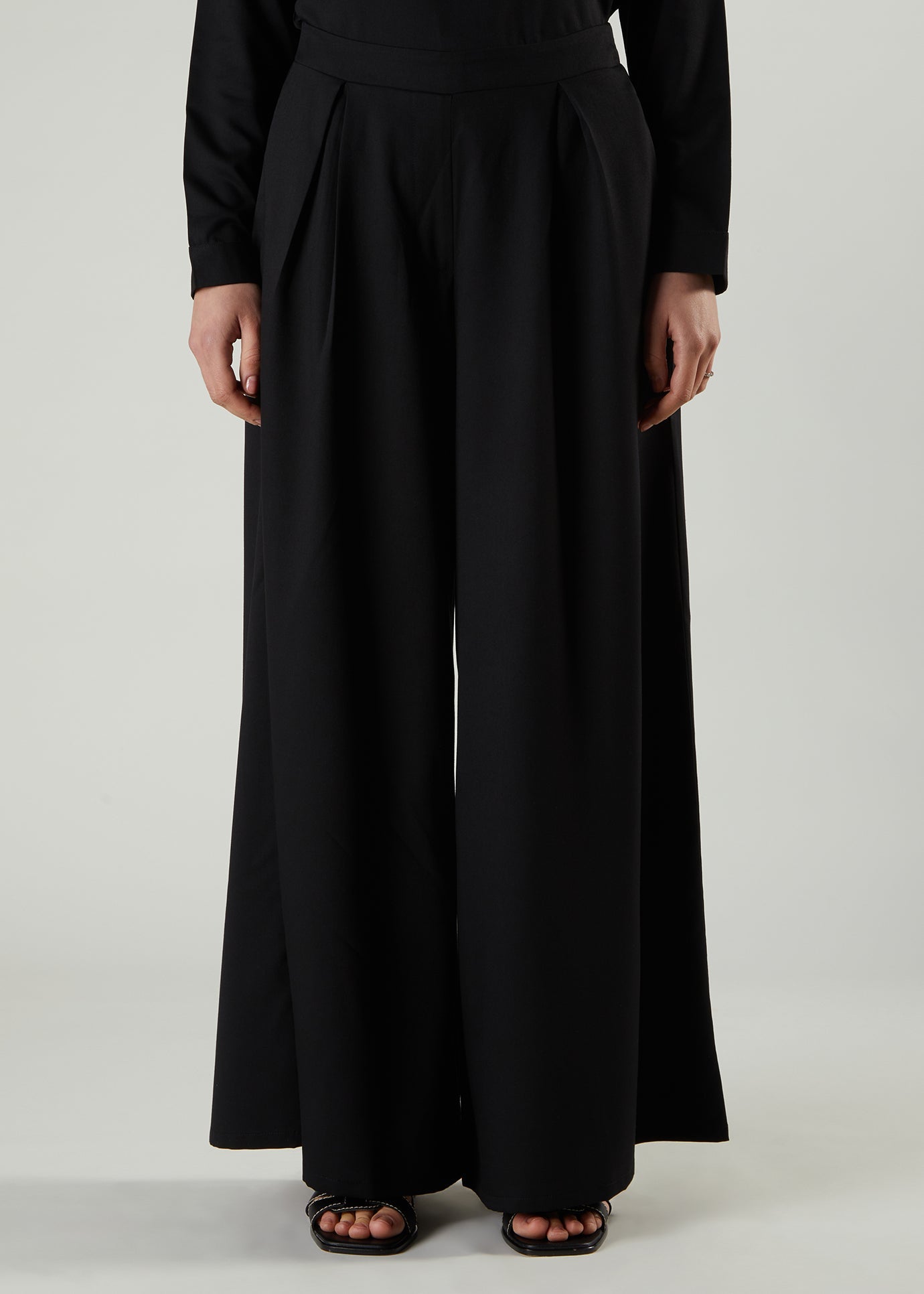 A mid flare trouser, cut with a modest silhouette. Has a fluid drape and pairs well with our Black Twill Top