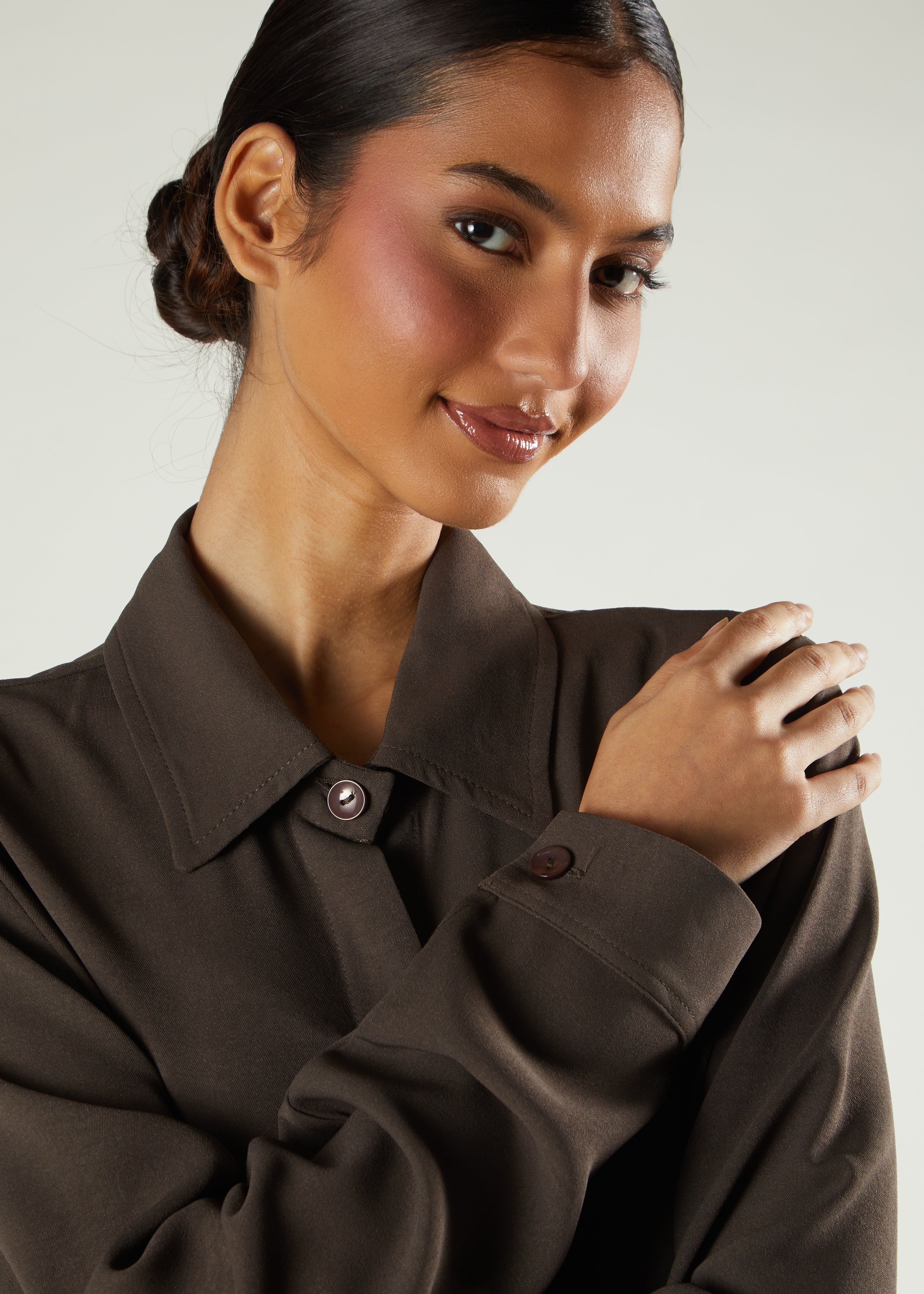 This versatile co-ord set combines a relaxed-fit shirt with mid-flare trousers in carefully curated seasonal hues. The modest proportions and generous cut allow effortless layering, making it an excellent foundation piece for transitional dressing. Designed to work seamlessly with outerwear or paired with our Second Skin collection for added warmth and dimension. Choose from three colour options that complement any seasonal wardrobe.