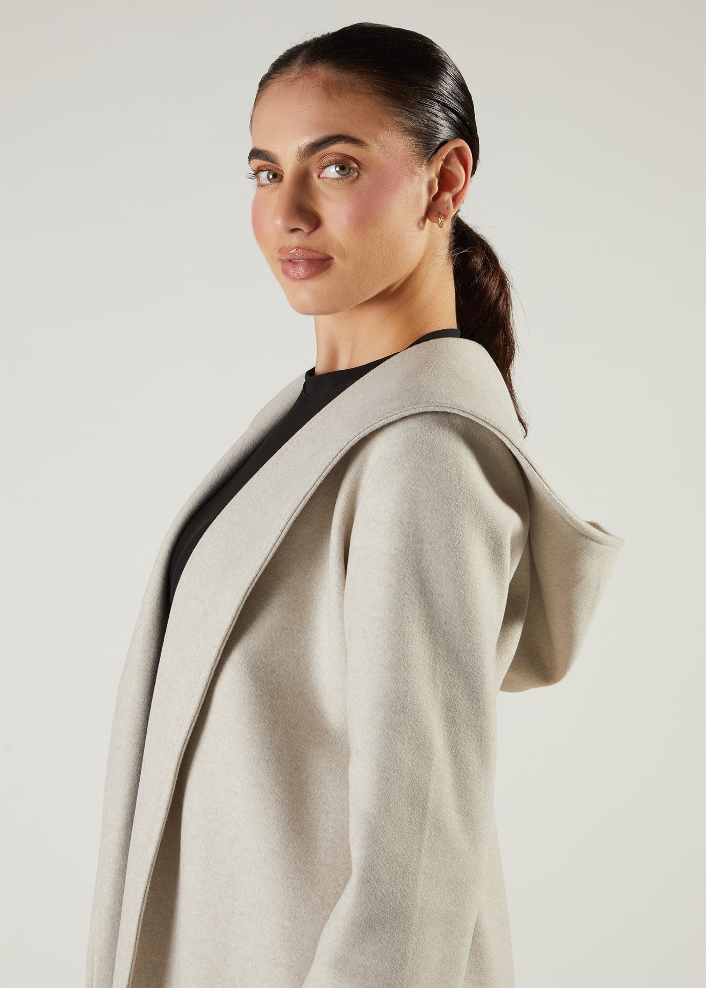 This open style cover up features a hood and no fuss detailing. Ideal to throw on as a quick cover up and perfect for the transitional season