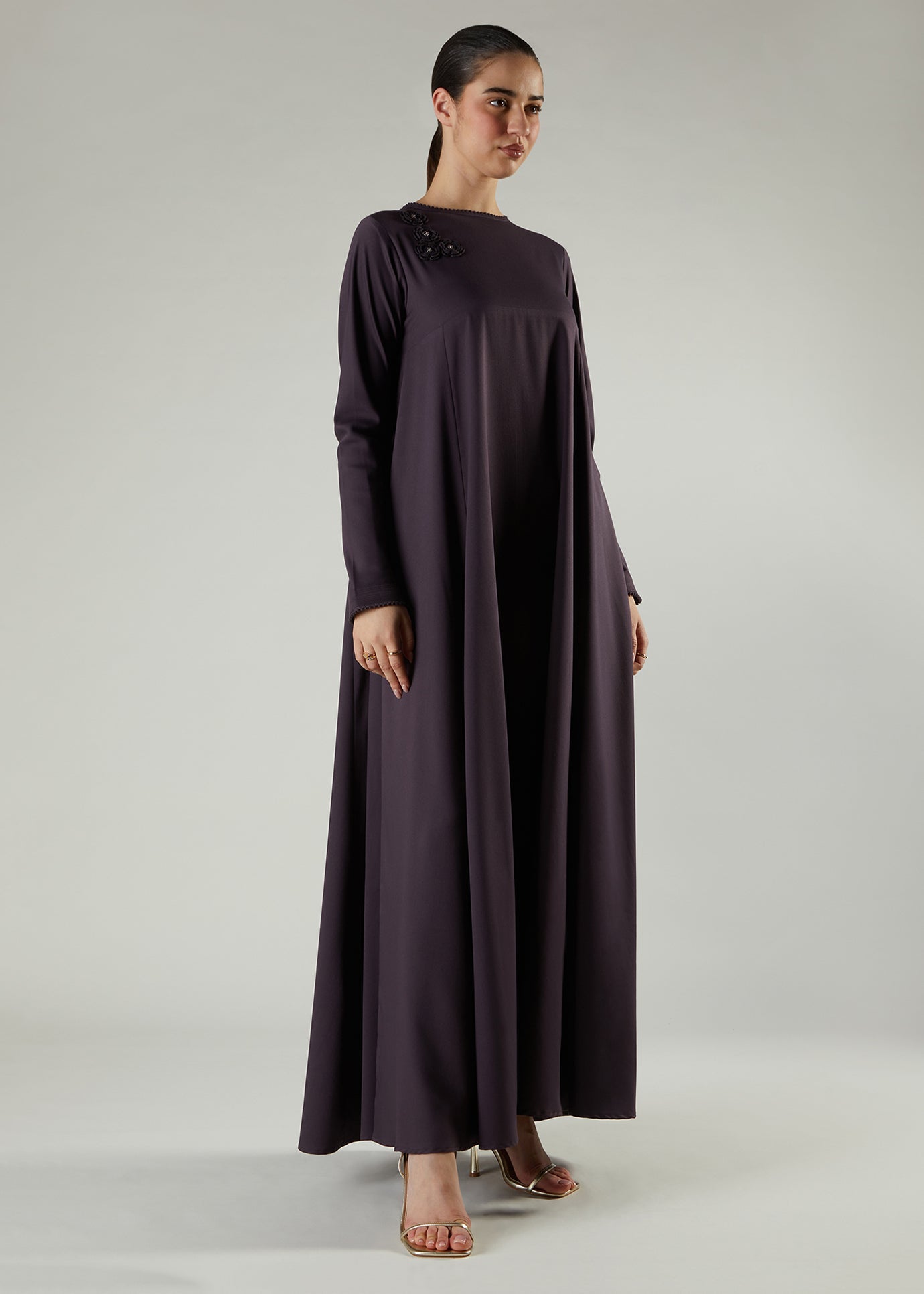 Crochet Flare Abaya Plum