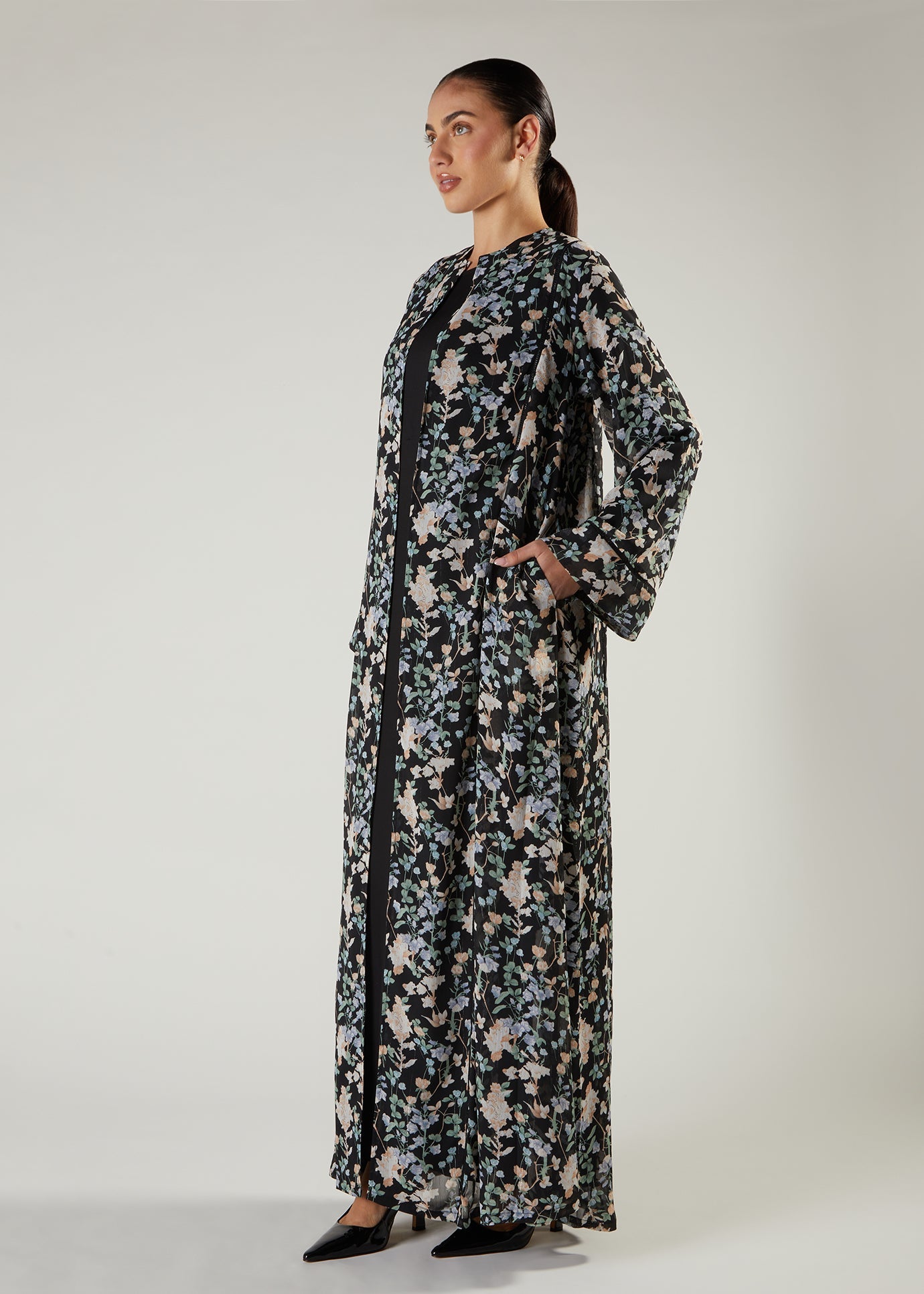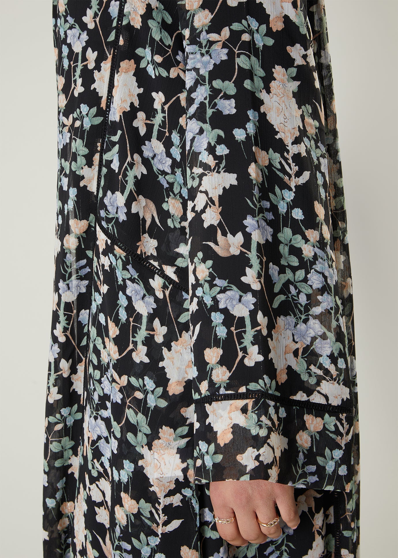 A soft fluid Kimono with a bold floral print, featuring ladder lace on the seams. Pair yours with a range of our full slips.