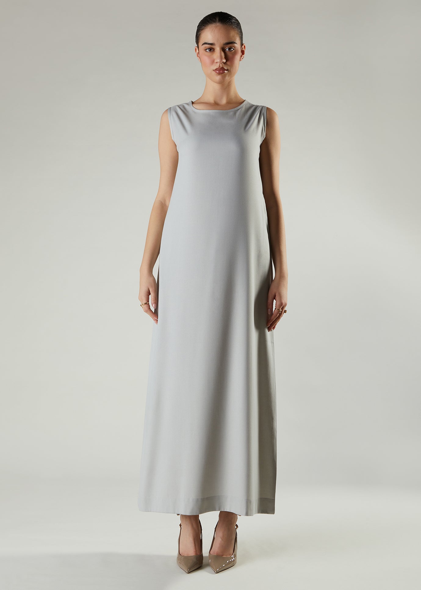 Full Slip Light Grey is a slip dress designed with full length options, discreet pockets, and a classic A-line cut that offers a flattering silhouette and practicality in one.