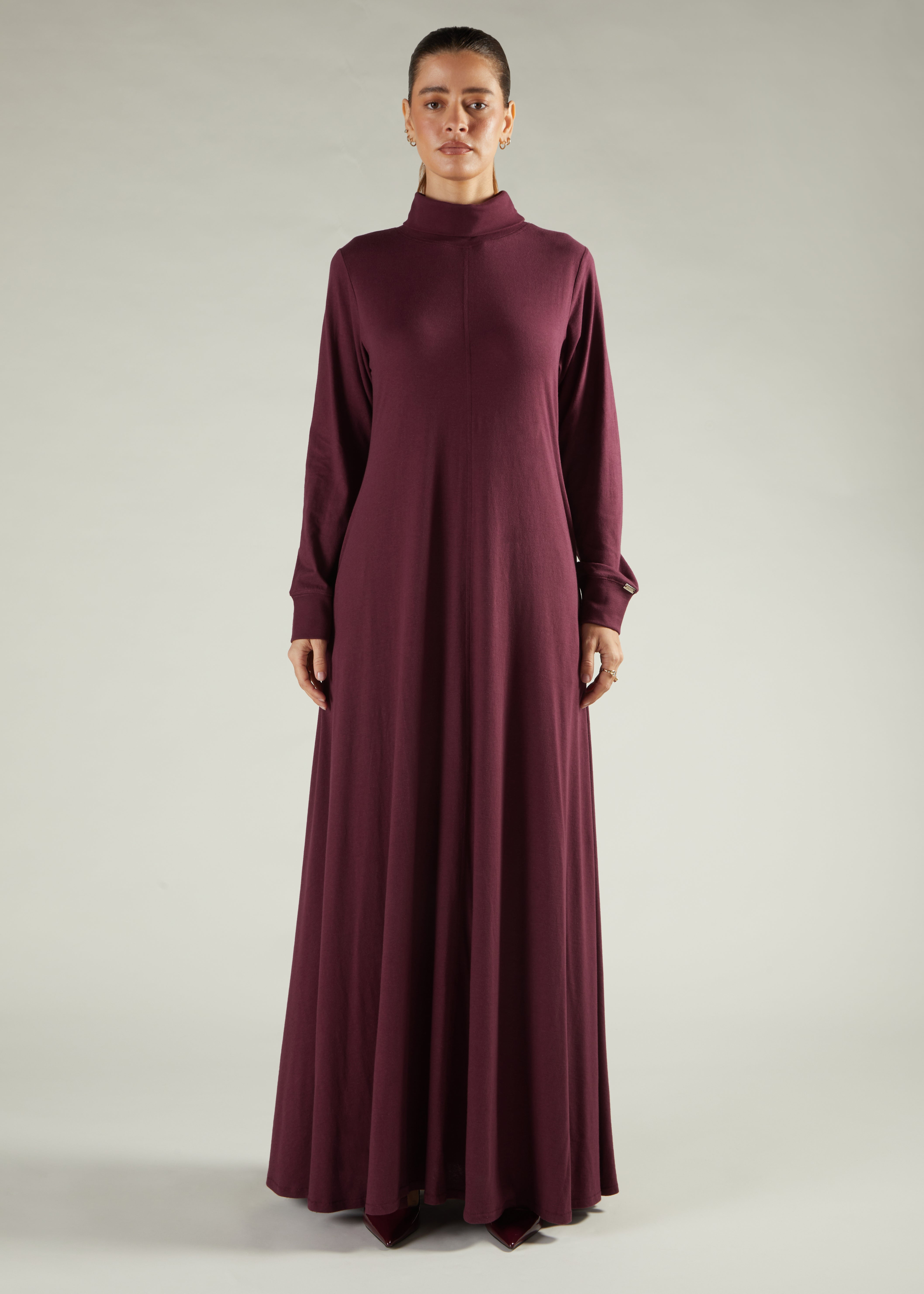 High Neck Abaya Winter Berry