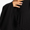 This exclusive Abaya boasts a loose, modest fit with a concealed back zip that adds a flattering touch to the fluid, free-flowing design. The exaggerated sleeves, complete with an inner button to prevent rising up, make this a perfect choice for any occasion.